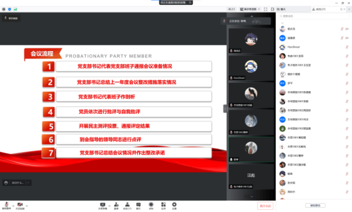 2022年3月5日下午,中共谈球吧体育官网入口管理公司员工第一党支部全体成员在线上召开了2021年度组织生活会并开展了支部书记“双述双评”和民主评议党员工作。旨在通过此次会议提高党员素质、增强党员政治责任感、改进党员工作态度,进一步加强基层组织建设和党员队伍建设。会议由支部书记李林主持,公司党委委员黎博作为党支部联系领导参与指导,共35名党员同志参与会议。