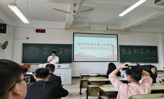 2022年5月25日中午12:30,管理公司员工第二支部委员会在新校区教学楼B栋406召开预备党员转正大会,讨论魏一凡等15名预备党员的转正问题,由支部书记罗蒙同志主持,共14名正式党员,31名预备党员参会。