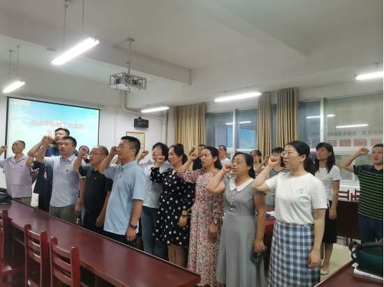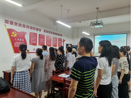 2022年7月5日下午,经济公司教工党支部在会议室召开全体党员会议,开展了两项主题党日活动。第一,组织全体教工党员集体观看了红星云上解读《中国共产党党徽党旗条例》的微视频,学习了解党徽党旗制作、使用、管理的基本遵循。第二,组织了集体重温入党誓词活动。全体教工党员面对党旗,集体重温了入党誓词,教工支部书记曾贵同志领誓。