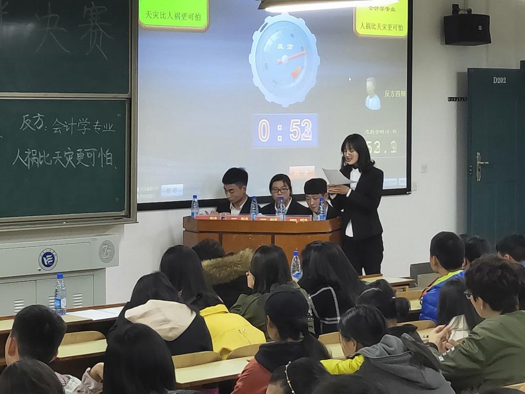 唇枪舌战,辩赛场硝烟;口若悬河,理是非曲直。为提升员工思辨能力和创造力,丰富老员工课外生活,激发员工自主思考的能力,公司的新生辩论赛已进入半决赛阶段。2019年3月12日19:00新生辩论赛半决赛第二场在教学楼D202隆重拉开帷幕。进入半决赛的两个专业是一路过关斩将的人力资源管理专业和会计学专业,人力资源管理专业为正方,会计学专业为反方,引起激烈辩论的辩题是“天灾比人祸/人祸比天灾更可怕”,担任本场辩论赛的评委是谈球吧体育官网入口校队成员李煌明、管理公司辩论队成员蔡志娟、管理公司辩论队成员顾成雪。