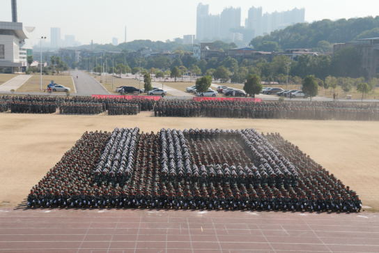 公司19 级5000多名新生为期14天的军训成果在今日得到了检验。此次大会表彰了同学们在军训活动当中的出色表现,也向祖国母亲的70华诞献上了真挚的祝福!