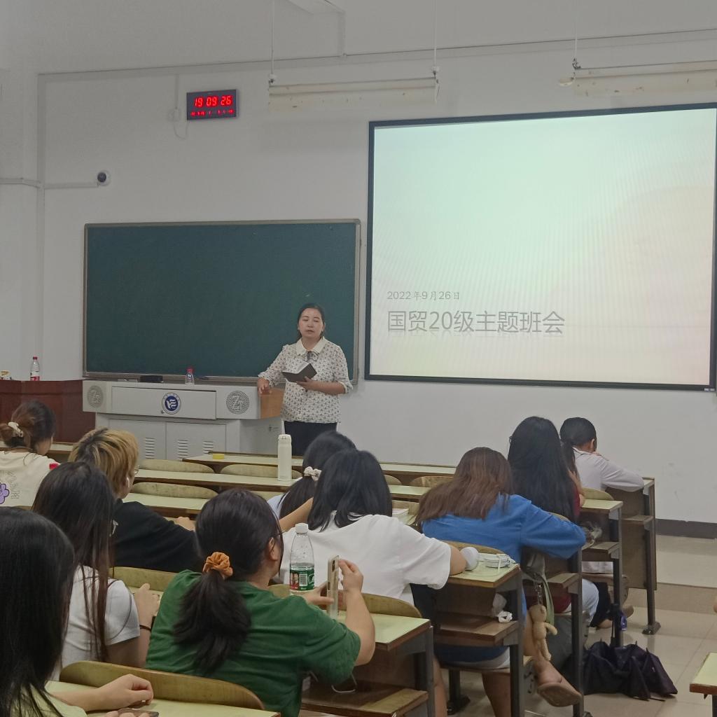 2022年9月26日,经济公司各班组织同学在新校区主教学楼召开安全主题班会,班会由各班班主任主讲。