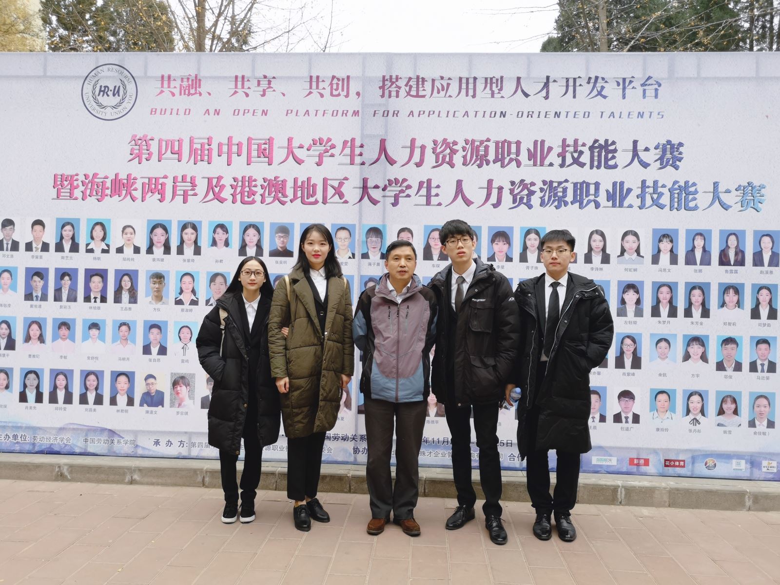 11月24日,第四届中国老员工人力资源职业技能大赛暨海峡两岸及港澳台地区人力资源职业技能大赛全国总决赛在中国劳动关系公司成功举办,本届大赛为期两天,由管理公司曹哲文老师带队指导的,人力资源15级张子鸣、文博涵,全湘君,向红四名同学组成的公司代表队参与此次赛事。经过为期两天的专业比拼,公司表现突出,荣获团体二等奖,其中曹哲文老师获优秀指导老师奖,张子鸣、文博涵、全湘君获单项二等奖,向红获单项三等奖。