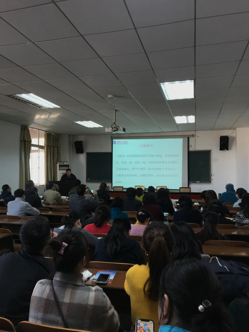 最后,钱书记强调,我们作为高校教师要严格要求自己,做到“教书育人”、“立德树人”,要用教育部《新时代高校教师职业行为十项准则》、“六条禁令”和高校教师师德禁行行为“红七条”来规范自己,杜绝任何违规违纪行为。