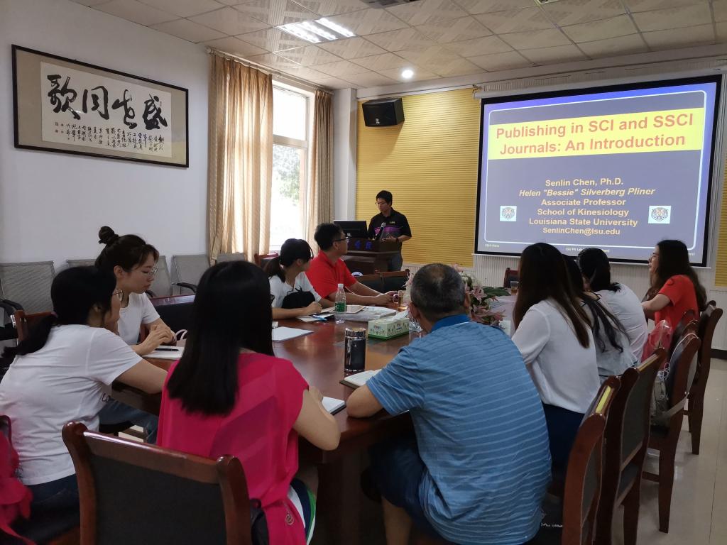 陈森林博士主讲的内容是提高SCI与SSCI论文写作方法和技巧以及分享发表高水平论文经验。陈森林博士对SCI与SSCI论文写作方法、投稿、修改等环节进行了详细分析。酝酿、写作、投稿、修改论文的思路使参加聆听讲座的老师们收获颇多。讲座最后,陈森林博士与各位老师分享了发表高水平论文经验。