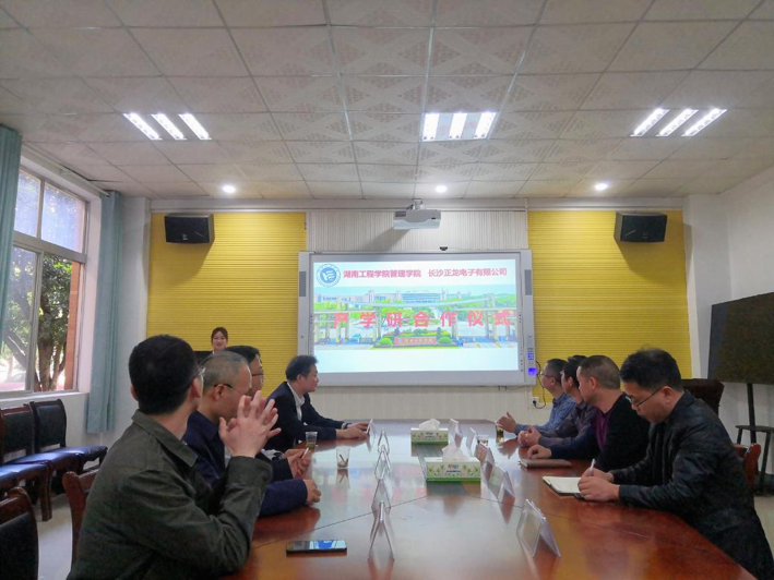 4月30日,谈球吧体育官网入口管理公司与长沙正龙电子有限公司产学研合作仪式于主校区教学楼F104举行。管理公司经理徐运保、副经理潘立军、黄毅、学办主任谭超、员工罗正龙、长沙正龙电子设备有限公司企业代表参加了此次仪式。