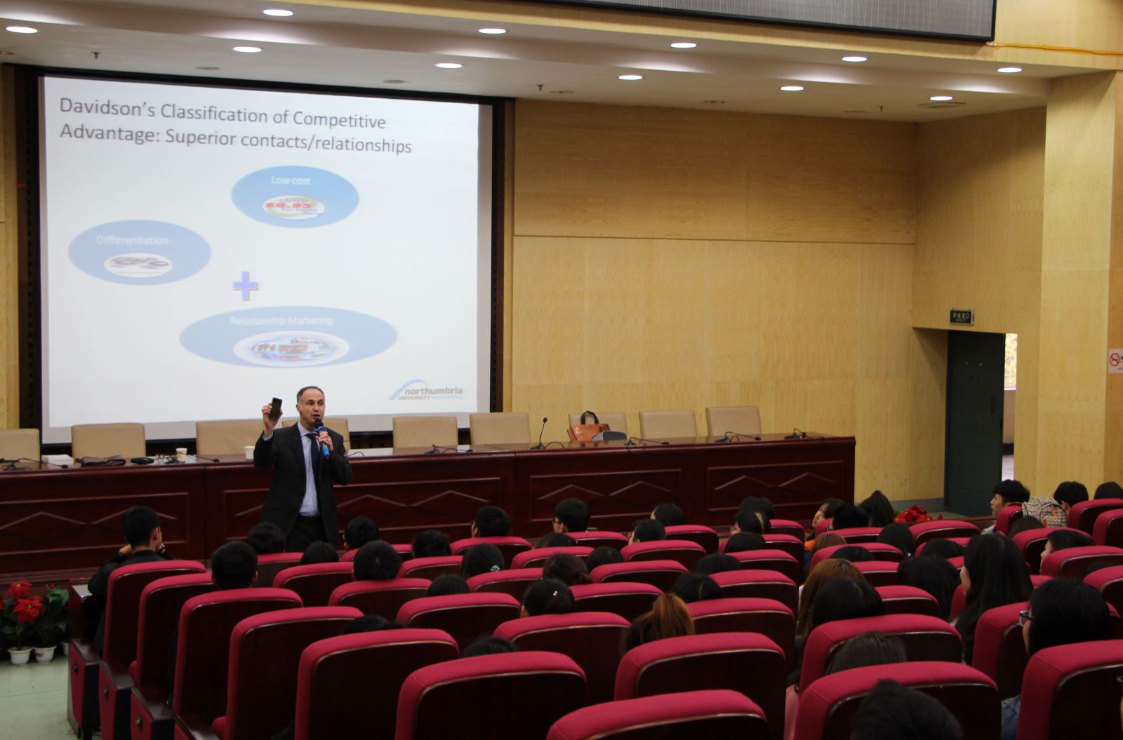 2017年3月29日下午,应公司国际交流处邀请,英国诺桑比亚大学副董事长Jon Reast教授于谈球吧体育官网入口图书馆第二报告厅进行了主题为“关系营销(relationship marketing)”的学术专题讲座。管理公司经理吴振顺担任此次学术讲座的主持人,管理公司和国际教育公司部分博士、教师以及市场营销14级、人力资源管理15级与16级的同学们聆听了此次讲座。