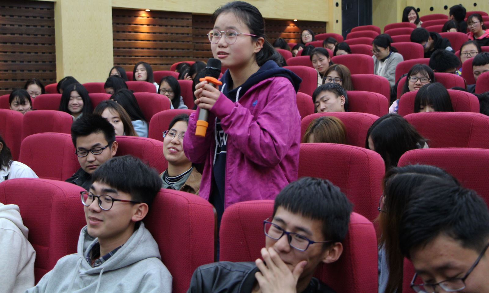 提问环节中,同学们踊跃发言。当被问到中英两国员工最显著的差异时,教授表示,相对而言中国员工在课堂上较为内敛,羞于展现自己;英国员工则偏活跃一些。现场气氛热烈,员工特有的新颖的思考角度也被教授所称赞。