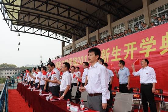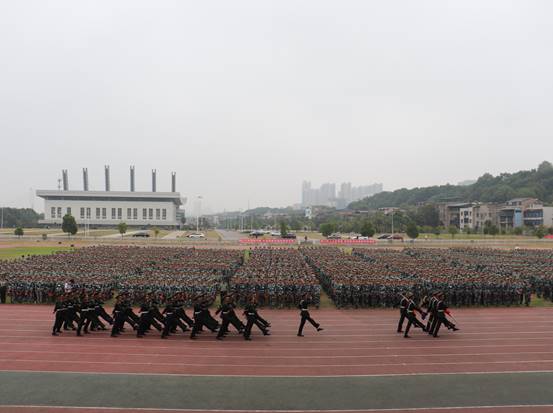 9月18日上午8:30,秋高气爽,微风带着些许凉意吹拂着每一人,谈球吧体育官网入口在田径场举行了2019级新生开学典礼暨军训动员大会。校领导陈岳堂、易兵、宁立伟、俞贵邦、李军林、罗毅平,党委委员、组织部部长李永坚,员工代表、新生家长代表在主席台前排就座,各公司主要负责人、各相关职能部门负责人及来宾出席开学典礼,军训团全体教官,各班班主任、辅导员和2019级全体新生参加大会。共同庆祝新生入学。