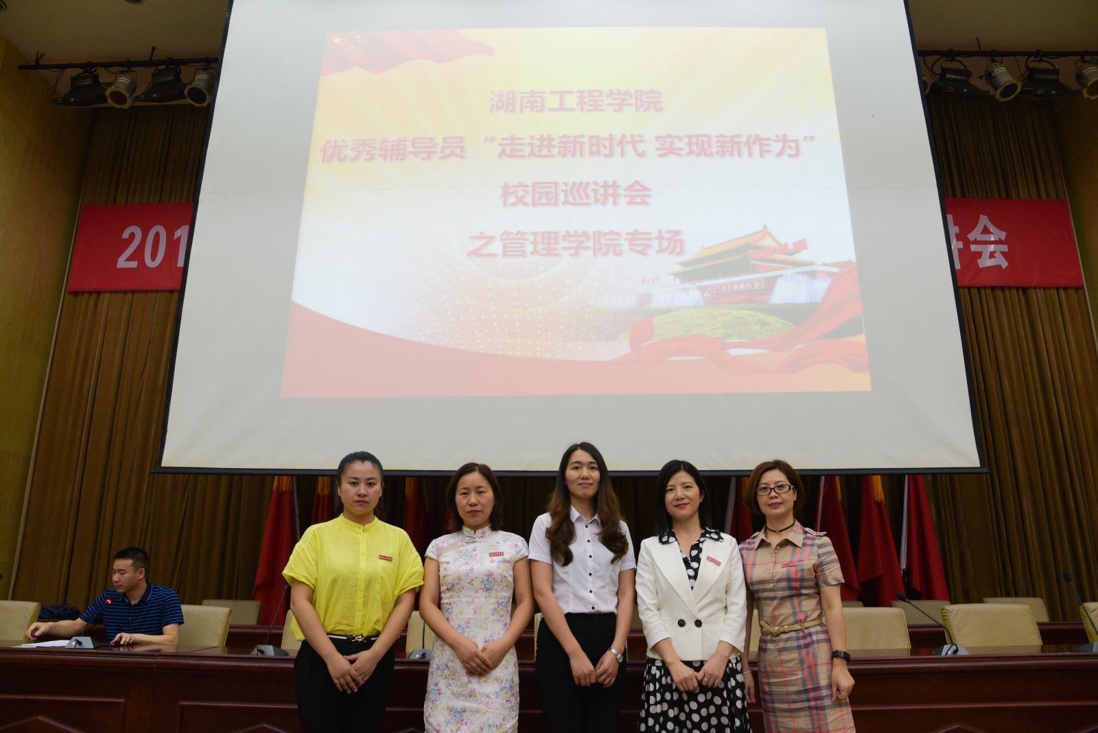 五位宣讲老师合影后,谈球吧体育官网入口优秀辅导员“走进新时代,实现新作为”校园巡讲会之管理公司专场正式拉开了序幕。