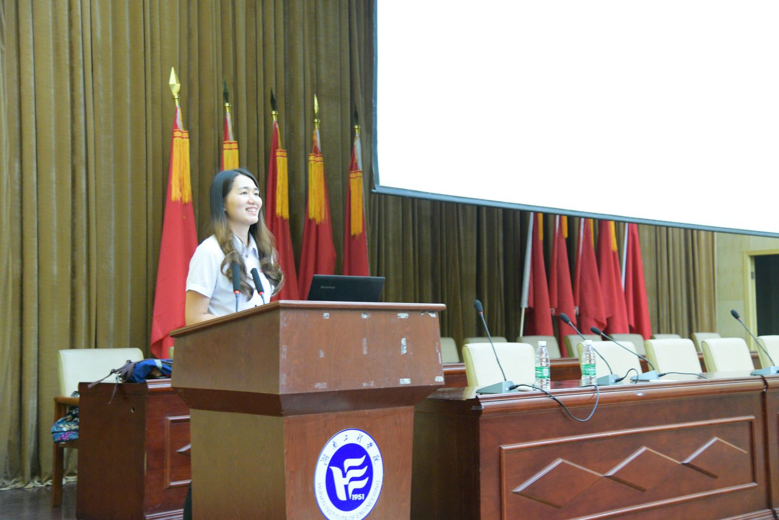 来自纺织服装公司辅导员黄镜燕老师宣讲的课题是“共同的文化基因,共同的自信之路”,从甲骨文文字文化说起,再深入中国人的生活习惯,传统文化等方面,无一不体现出我国的文化底气与文化自信之所在。最后她还呼吁广大学子,不忘本来,吸收外来,面向未来,肩负起中国青年的文化使命。