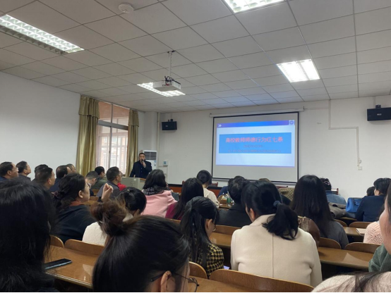徐经理组织与会老师集体学习《高等公司教师职业道德规范》、《高校教师师德行为红七条》、《关于全面落实研究生导师立德树人职责的意见》、《新时代高校教师职业行为十项准则》、《关于高校教师师德失范行为处理的指导意见》、教育部等七部门印发《关于加强和改进新时代师德师风建设的意见》、《谈球吧体育官网入口关于加强和改进师德师风建设的实施意见》和《谈球吧体育官网入口师德师风负面清单制度》等文件,结合公司具体工作从坚定政治方向、自觉爱国守法、潜心教书育人、关心关爱员工、秉持公平诚信、坚守廉洁自律等方面进行了解读。