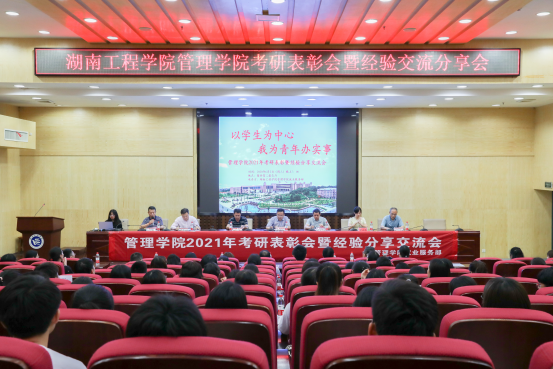 公司党委书记余博宣读《关于表彰管理公司2021年优秀考研毕业生的决定》;市场营销1701班徐诚同学代表考研优秀员工作交流发言;人力资源管理1801班孙瑞晶同学代表2022届考研学子作考研动员倡议;罗小青分享自身奋斗经历鼓励学弟学妹们要笃定目标,风雨兼程,在考研征途上实现人生新高度,将考研作为大学四年学业生涯的检验场。