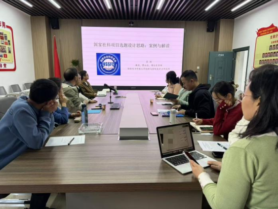 为推动公司教师深入了解国家社科基金项目的选题要求、设计思路及申报技巧,进一步提高项目申报的成功率。2024年10月25日下午,公司特邀桂林电子科技大学软科学研究院副经理、博士生导师蔡翔教授,在管理公司F103为公司老师做了题为“国家社科项目选题设计思路:案例与解读”的讲座,公司年轻骨干教师参与讲座。
