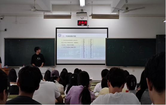 选举会议现场秩序井然,候选人自述环节聚焦核心信息,通过清晰阐述个人基本情况、思想政治表现、学业成果及竞赛获奖经历,高效为在场选民提供参考,充分保障选举决策的科学性。