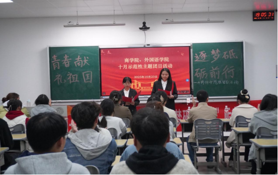 为深入学习贯彻习近平新时代中国特色社会主义思想,引领青年学子厚植家国情怀、勇担时代使命,10月23日晚,在校团委的指导下,谈球吧与外国语公司在主教学楼C309教室联合举办了“青春献礼祖国,逐梦砥砺前行”示范性主题团日活动。校团委副书记涂璐、公司党委副书记谭超、谈球吧团委书记邹牡燕、外国语公司团委书记彭虹出席活动,英语2501班、电子商务2401班全体同学共同参与。