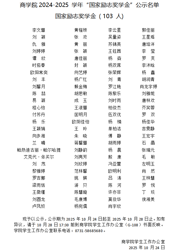 谈球吧 2024-2025 学年“国家励志奖学金”公示名单