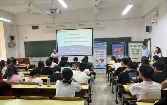 为落实“投教进百校”宣传活动,提高同学们对非法证券以及各类诈骗方式的鉴别能力和防范意识,更好地构建“平安和谐”校园,6月20日下午,申万宏源证券湖南分公司湘潭建设北路营业部举办了“防非反诈”讲座,此次讲座面向管理公司工商管理22级同学,在主校区教学楼C座102教室开展具体讲座活动。