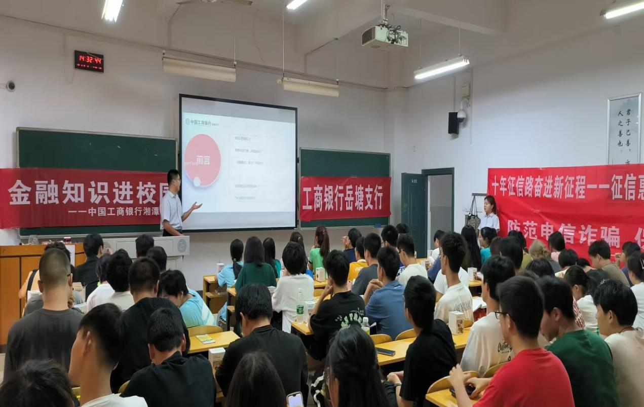 为增加同学们对金融知识的了解,减少因为金融诈骗而造成钱财流失,谈球吧体育官网入口管理公司邀请中国工商银行岳塘支行到校内进行金融知识宣讲。宣讲活动于6月14号下午三点在主校区a102进行,由专业的工作人员主持。