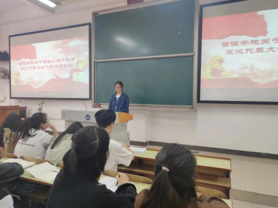 本次员工代表大会同学们以严谨负责的态度对待,充分发挥了民主精神,尊重每位同学的民主权利,班委会严格按照民主集中制的原则进行推选,采用无名投票的形式初步选出代表候选人名单(少数民族代表、各类先进模范人物在代表构成中需占有一定的比例),员工代表中要求有各级员工干部、先进集体(优秀团支部、活力团支部、优秀班集体等)的代表和先进个人(优秀团员、优秀员工干部、三好员工等),并覆盖各公司、年级及主要社团,其中校、院员工会工作人员的代表一般不超过40%,女性代表一般不少于25%,以各公司员工总人数1%的比例选举产生代表,组建成四个代表团。